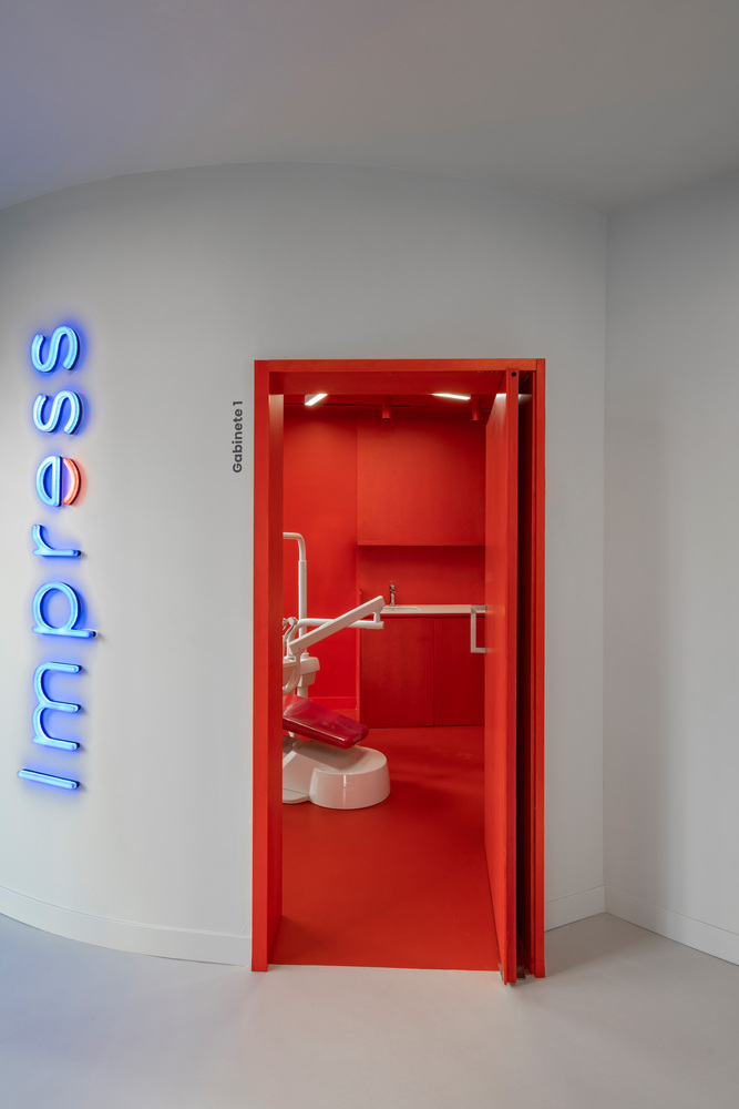 今天這個項目案例是位于西班牙馬德里的Impress牙科診所,這家診所主要針對年輕用戶,相較印象中醫院往往以白色為主色的設計風格,這個項目大膽制造了紅色與藍色的碰撞,營造出了強大的視覺沖擊。